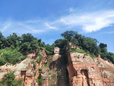 It is another day of varied scenery on a small road, with views alternating from the river and its cliffs to terraced tea plantations and dense forestry. Riding 30 kms, you'll meet the Sichuan Hand Made Paper Museum that records China's invention of paper in the ancient time. Later, you will come across Jiajiang County’s Thousand Buddha Cliff with buddhist inscriptions carved into the rock by scholars from the Tang and Song Dynasties. Conitnuing with a 30 kms of ride, you will arrive at Leshan, home of the largest and tallest carved stone Buddha in the world. You will take a manageable uphill on a small road which rewards you with stunning views of tea plantations tiered out around and below you. You will take a short cruise to visit the site and appreciate the 71m carving calmly and majestically towering and watching out over above you.