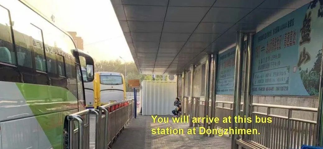 Bus Station -> Xiangheyuan South St. -> Dongzhimenwaixie St. -> Dongzhimen Outer St. -> Subway Line 2 (B).